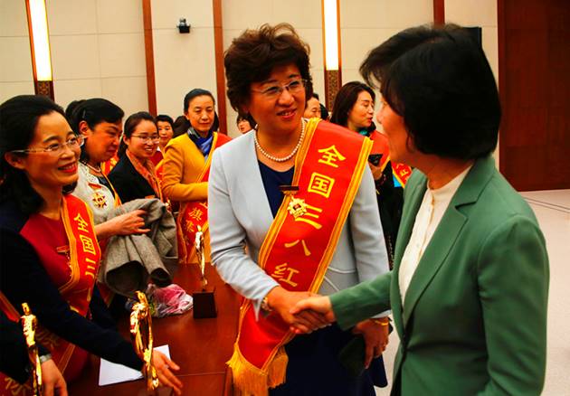當天,中共中央政治局委員、國務院副總理劉延東,中共中央政治局委員、國家副主席李源潮會見受表彰的先進代表。全國人大常委會副委員長、全國婦聯(lián)主席沈躍躍出席會議并發(fā)表講話。全國婦聯(lián)黨組書記、副主席、書記處第一書記宋秀巖主持大會。